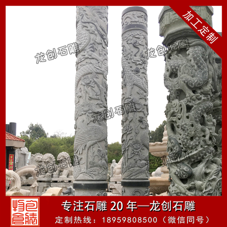 最后,石雕龍柱可以起到裝飾作用。美好的石雕作品總是能得到人們的欣賞,而且一定程度上,對于商場的人氣和生意也起到很好的作用。石雕這種工藝的展示讓石雕龍柱的發展更加迅速,也會讓更多人喜歡和了解到石雕龍柱,并且能欣賞到這種非常獨特之美。