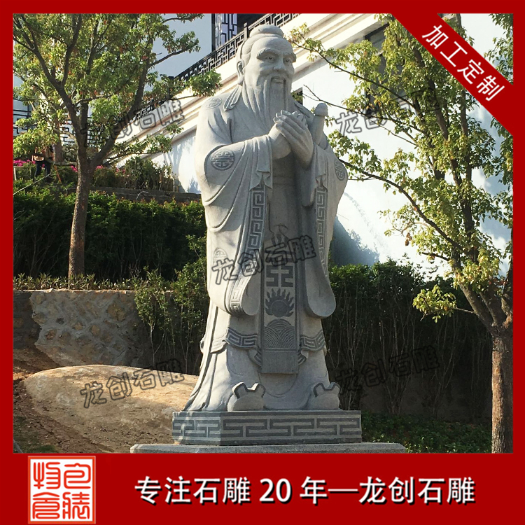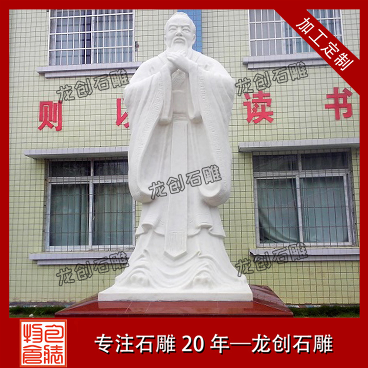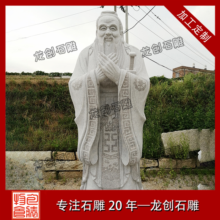 一般比較常見的石雕孔子像有比較簡單的頭像,也有站姿的石雕像,基本上站立姿態(tài)的石雕像選擇性更遭到人們喜歡,有手里握著書卷拿在胸前,一手背在身后,抬頭挺胸,目光瞭望的石像,也有將雙手交叉并在胸前,可是咱們能夠看到交疊的手是不顯露大拇指的,標(biāo)志著謙恭有禮,而四指并攏,也代表著四海之內(nèi)皆兄弟,有著友愛、友誼的標(biāo)志意義。