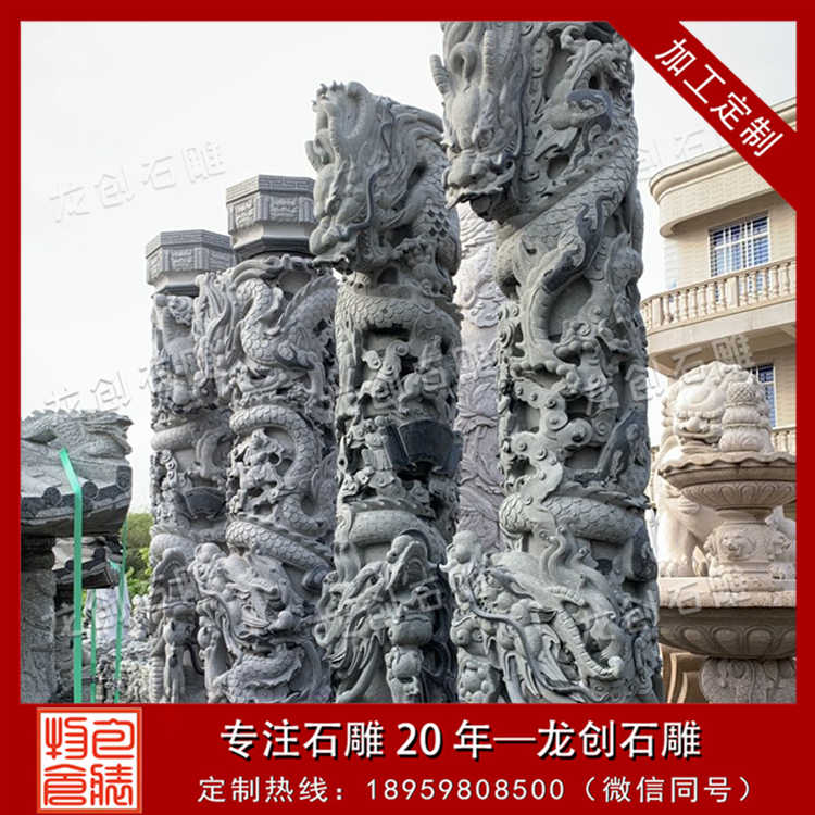 石雕單龍柱是我們經(jīng)常見到的龍柱類型,因為主要材料是青石,故被稱之為青石龍柱,青龍是中國四大瑞獸之首,左青龍,右白虎,表示的是青龍的一種地位,高于白虎的。青龍柱主要是護(hù)宅所用,所以大部分?jǐn)[放在陵墓,寺廟。