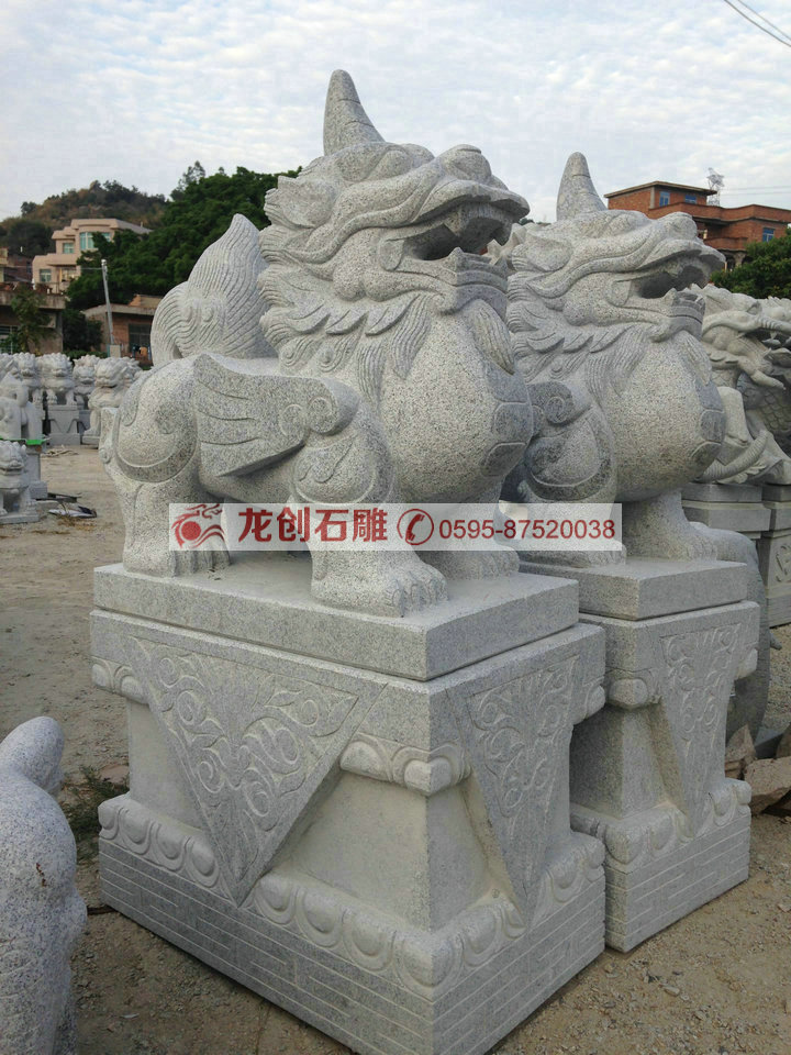石雕貔貅又名天祿、辟邪,百解,共四個名字,是中國古代神話傳說中的一種神獸,龍頭、馬身、麟腳,形狀似獅子,毛色灰白,會飛。石雕貔貅兇猛威武,它在天上負責巡視工作,阻止妖魔鬼怪、瘟疫疾病擾亂天庭。晚霞紅貔貅、石貔貅、聚財貔貅在古代社會中,通常上至帝王、下至平民百姓都有在身上戴貔貅的習慣,因為貔貅是一種比較兇狠的神獸,傳說貔貅因為違反了天條而被玉皇大帝處罰,讓它只能吞下多方的東西但是卻沒有肛門不能排泄,具有特殊的能力貔貅可以為他們帶來好運和快樂,趕走身邊的晦氣,古時候人們也常用貔貅來作為軍隊的稱呼。它有嘴無肛門,能吞萬物而從不瀉,可招財聚寶,只進不出,神通特異?,F(xiàn)在很多中國人配戴貔貅的玉制品正因如此。