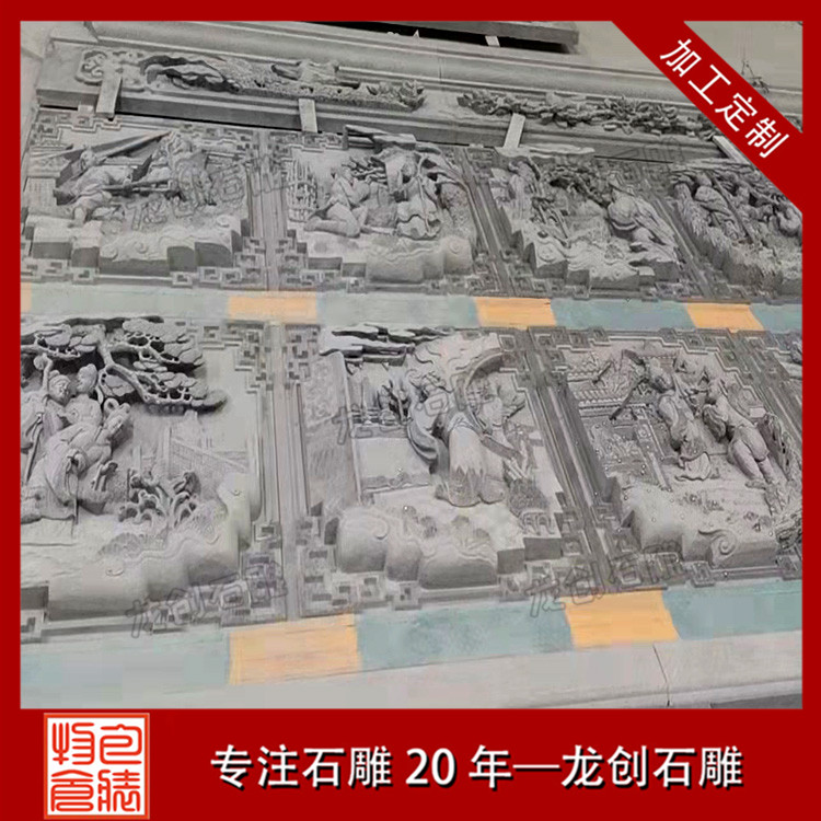 石材浮雕墻作為宗祠建筑中的重要裝飾元素,通過(guò)傳統(tǒng)雕刻工藝,將各種圖案、人物、文字等刻畫(huà)于石材上,以展現(xiàn)出豐富多彩的宗祠文化內(nèi)涵。浮雕墻上的石雕作品,既具有藝術(shù)性的觀賞性,又承載著宗祠的歷史定位、修建初衷以及家族的傳承精神。而這些石材浮雕墻正是傳承和守護(hù)著廣東的家族文化和嶺南文化。