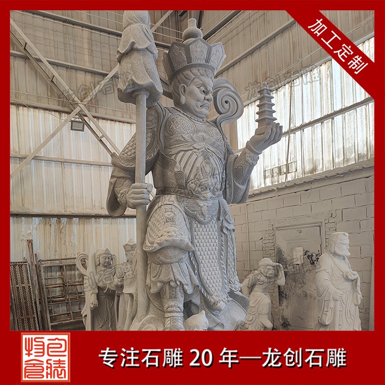 石雕四大天王是佛教中的護法神,常被雕刻成石像用于寺廟、道觀等宗教場所的裝飾和守護。這四位天王分別是: