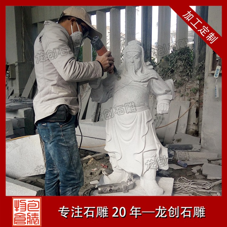 雕刻過程更是獨具匠心。從整體構圖開始,雕刻師們會根據石材的形狀和大小,精心設計關公的姿態和神情,力求展現出關公的威武與莊重。在粗雕階段,雕刻師們運用各種大型雕刻工具,大刀闊斧地鑿出關公像的大致輪廓,展現出其矯健的身姿和威嚴的氣勢。