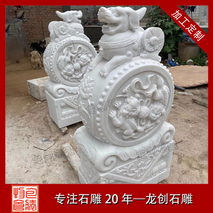 抱鼓石是作為承托和穩(wěn)定門板門軸、加固或安裝門檻的一個構(gòu)件,有利于防止門板受外力晃動,大大增強門框的穩(wěn)定性,起到聯(lián)系門檻的作用。另經(jīng)枕石墊高后還可以防水防潮。外部抱鼓石主要是承擔著大門板的平衡重功能,以其前部的重量來平衡門板轉(zhuǎn)動時的重力。
