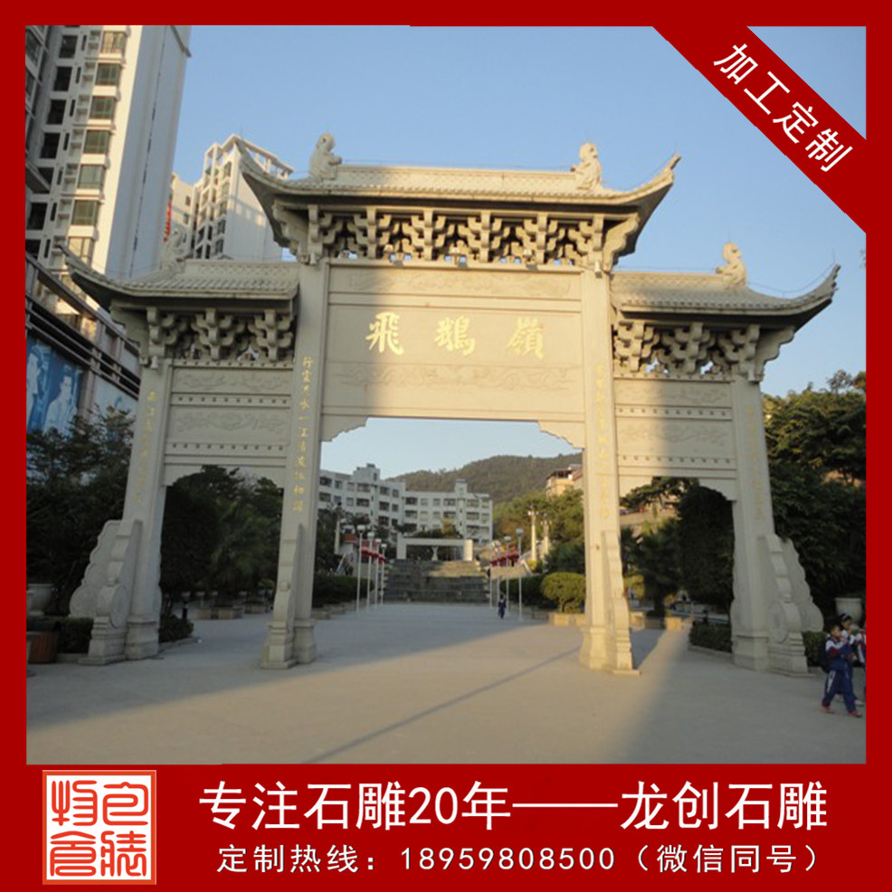 石牌坊制作廠家龍創(chuàng)石雕為您引見村口石牌坊。
