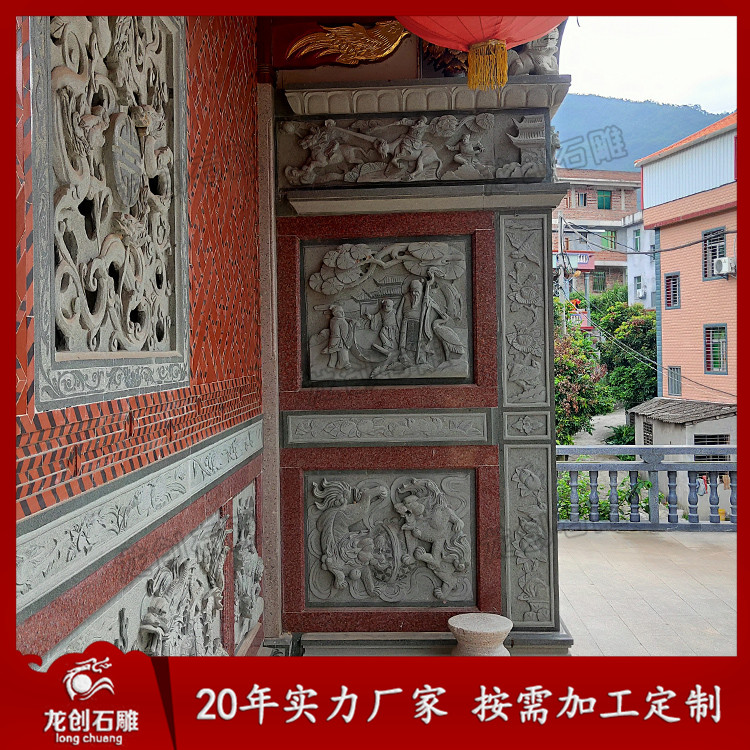惠安龍創石雕常年供應:祠堂石雕龍柱、宗祠石雕牌坊、祠堂石雕外墻、宗祠青石浮雕墻、祠堂鏤空雕窗花、祠堂刻字石牌匾、祠堂抱鼓石、石雕門枕石、祠堂門口石雕獅子、宗祠門口石雕大象、石雕麒麟、石雕九龍壁、祠堂石雕香爐祠堂石雕供桌等等。