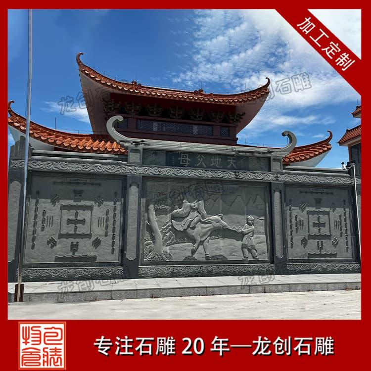 照壁雛形可追溯至漢代,早期為宮苑貴族專用;唐宋漸入寺院、官邸;明清普及至民間宗祠、大院與園林,成為身份與家風的載體。由壁座(須彌座 / 素座,承重)、壁身(主體,雕刻核心區)、壁頂(仿傳統屋頂,歇山 / 硬山 / 懸山,防雨水侵蝕)三部分組成。