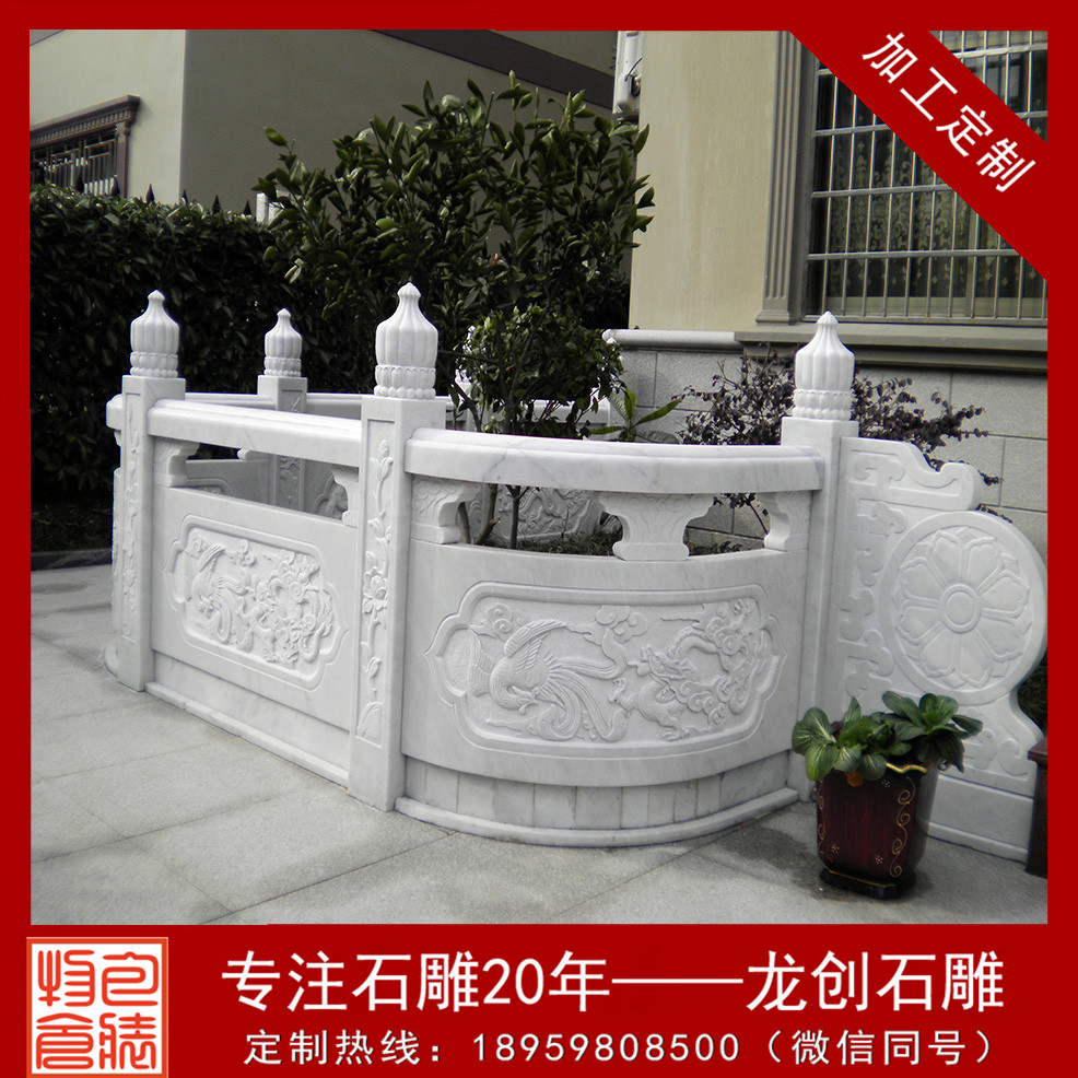 漢白玉石欄桿的制造安裝工藝是先人留下的寶貴財富,許多工藝的口訣都是工匠在操作中形成了自己的習氣,并一代代口傳親授,薪火相傳。漢白玉石欄桿具有很強的表現力,可雕刻出各種古典式樣的圖案。有著時尚、漂亮、環保、抗老化、不變形的功能優點,可廣泛用于市政、水利、公園、交通橋梁等護欄工程。