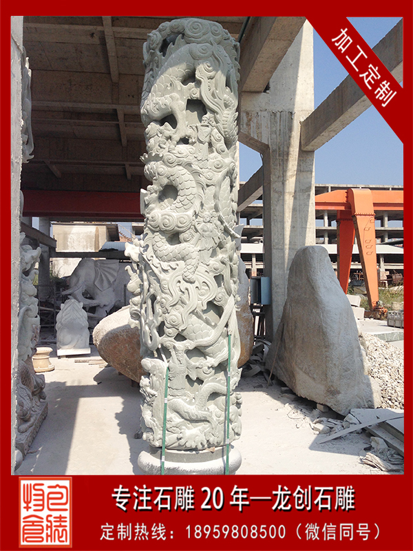 石雕龍柱作為工藝美術的重要門類之一,龍自然是重要的以至是主宰一切創作內容。時至今日,我們尚無牢靠查獲的材料供以研討石雕蟠龍柱在石雕開端于史何年何代,我們只能就目前所能查詢的石雕能柱和遺存廢物來做詳細剖析,依據目前控制的廢物查料,能夠推斷蟠龍石柱的呈現,大致是在宋以后,而現存寺院內的石雕龍柱,從其姿勢剖析,大多是明、清代的作品,其中尤以清代作品居多。現在哪里有石雕龍柱出售?石雕龍柱生產廠家龍創石雕為您解答。