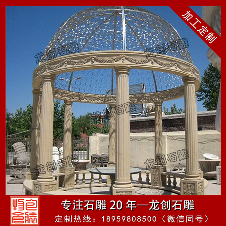 石雕亭子是指用石頭加工而成的亭子,多建于路旁,供行人休息、乘涼或觀景用。它的作用是供人們?cè)诶锩嫘菹?,在廣大的農(nóng)村、鄉(xiāng)間道路、景區(qū)道路上都可以見到石亭子或者木亭子,這種休息的叫做“路亭”,在園林中觀賞的叫做“景亭”在中國(guó)來(lái)說(shuō)是有園林綠化的地方就有石涼亭。石亭子一般為開敞性結(jié)構(gòu),沒有圍墻,頂部可分為六角、八角、圓形等多種形狀。石雕亭子加工找龍創(chuàng)石雕。