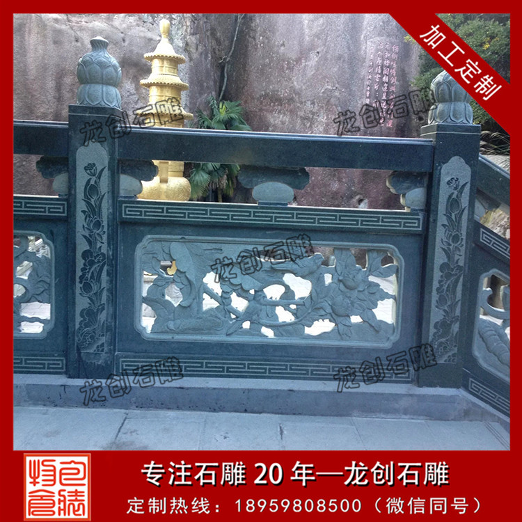 石雕欄板就是人們常說的石欄桿中板的部分,是我國獨(dú)有的一種建筑護(hù)欄措施。有著悠久的發(fā)展歷史,在我國各地的橋梁、公園、護(hù)河、陽臺(tái)等地都能見到石雕欄板的身影?,F(xiàn)在人們?yōu)榱苏宫F(xiàn)石雕欄板裝飾美化的作用,都會(huì)在欄板上雕刻很多圖案,這些圖案是多樣化的,只要客戶喜歡滿意,有積極意義的圖案都可以雕刻在石欄板上。