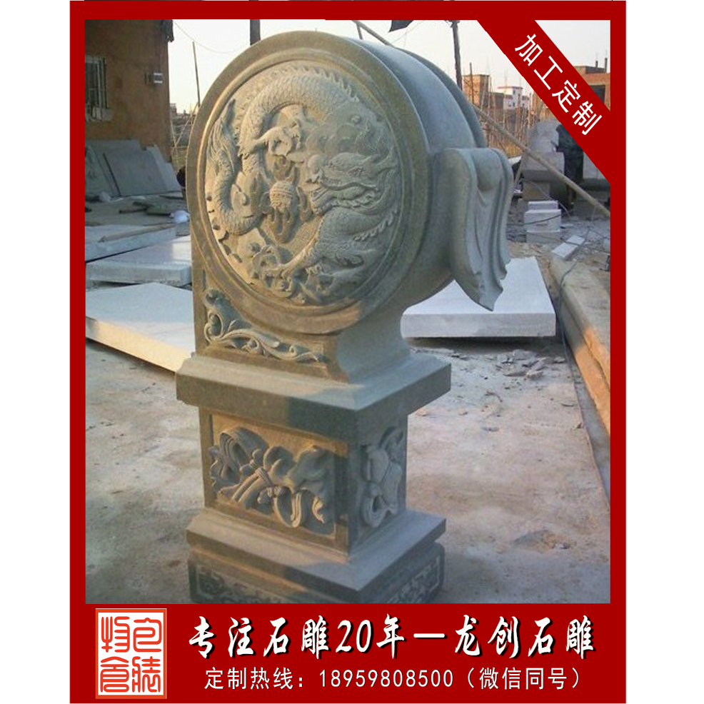 抱鼓石上雕有漩渦狀擬日紋,寓闔家幸福,前程光明之意。