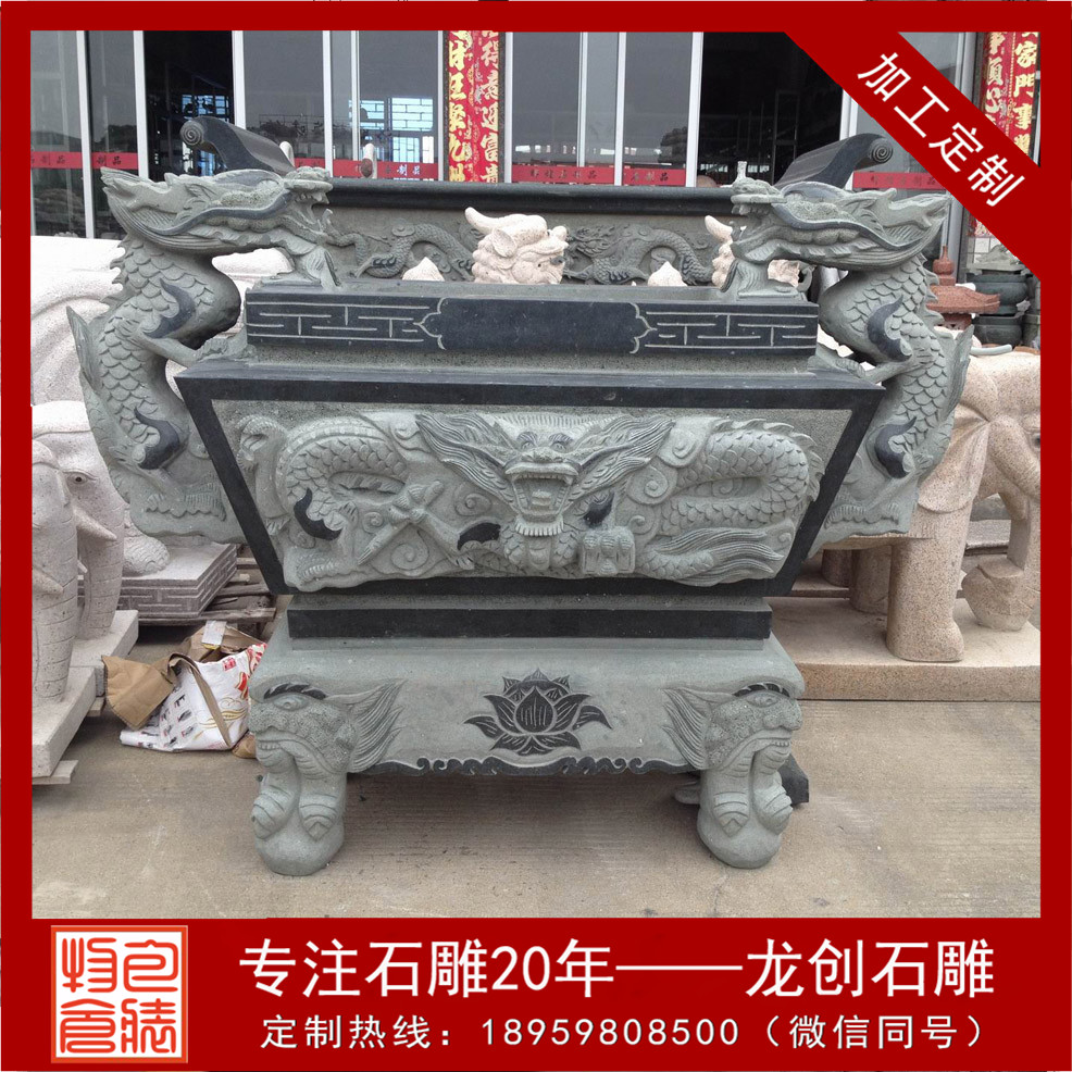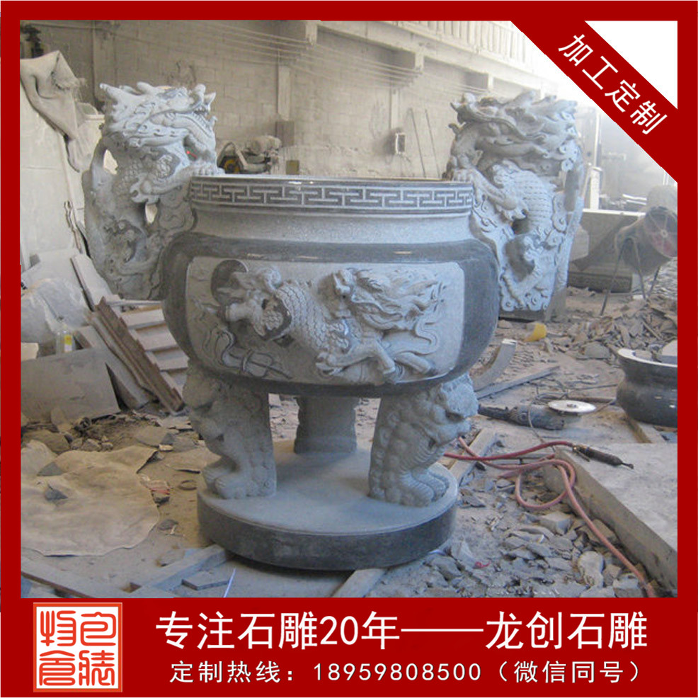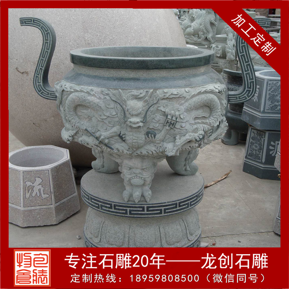 石雕圓形香爐會選用石材雕刻而成的石雕香爐還有一大原因,那就是原始的材質問題,使用天然石材雕刻而成的寺院香爐放置于殿外,不怕風吹日曬,不易腐化,使用年限久遠!那么寺院石雕香爐常用的石材有哪些呢,青石香爐、芝麻黑香爐、大理石香爐,這三種石雕香爐是較為常見的。古人的香爐都是需有爐蓋的,即使是宋代的石雕小香爐,也要配上爐蓋,云起香堂的香器沿襲了這一習慣,精致典雅的香爐令人一眼看上去就喜歡?,F代石雕香爐也有很多帶蓋的,帶獸耳的,款式更加多樣化了。我們在寺院中多見于圓形的石雕香爐,此石雕香爐都有三足,一足在前,兩足在后,是如法的放置;常以之譬喻佛教中的三寶,缺一不可。
