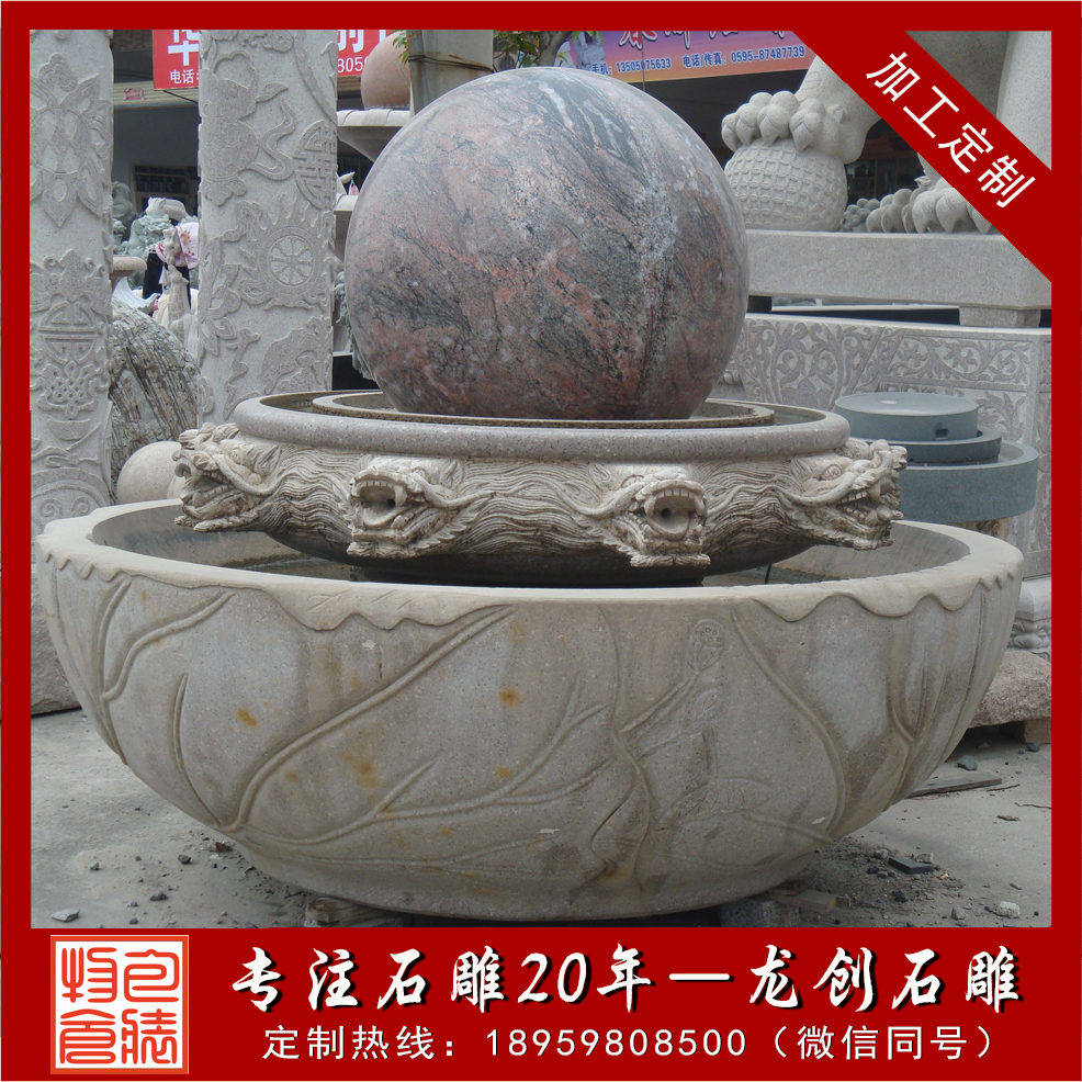 石雕風水球常見的石料有黃銹石、楓葉紅、松香玉、山西黑、白麻石、大理石、花崗巖、漢白玉等;轉動的身軀,舞動的旋律,潺潺流水托起一個偉大的奇跡!讓我們一起感受生活,感受生命,感受偉大的力量,感受人生的哲理!