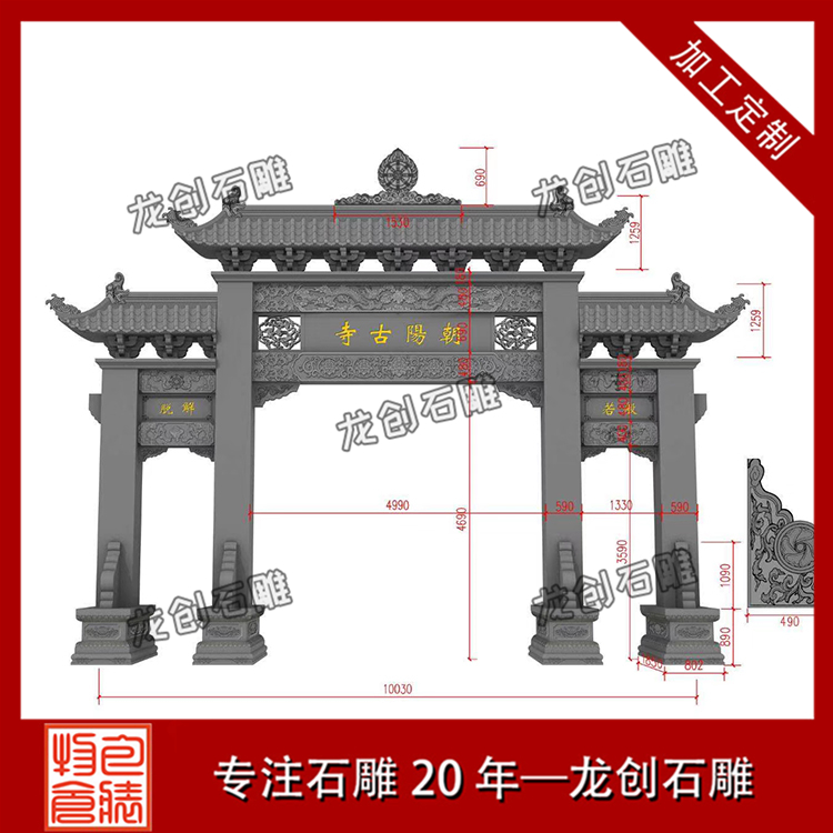 花崗巖石牌樓廠家龍創石雕生產的石牌樓古樸典雅、新穎美觀,無論人物或動物都栩栩如生,成為提升形象、營造古典文化的一大特色。我廠專業制作設計各種石牌樓,青石牌樓定制,在石雕行業中有著專業的技術團隊,可以為每一個地方設計出具有他們當地文化的石牌樓,龍創石雕全體員工熱誠歡迎您前來參觀。