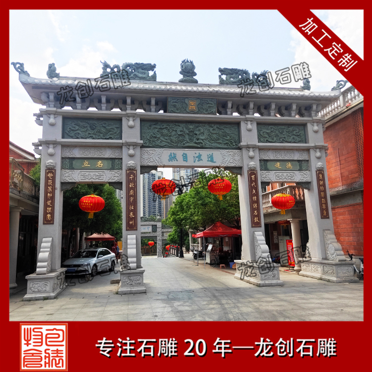 3、山門寺院牌坊、鎮山牌坊,建在各種廟宇道觀前的牌坊,坊名隨廟宇名稱而定。