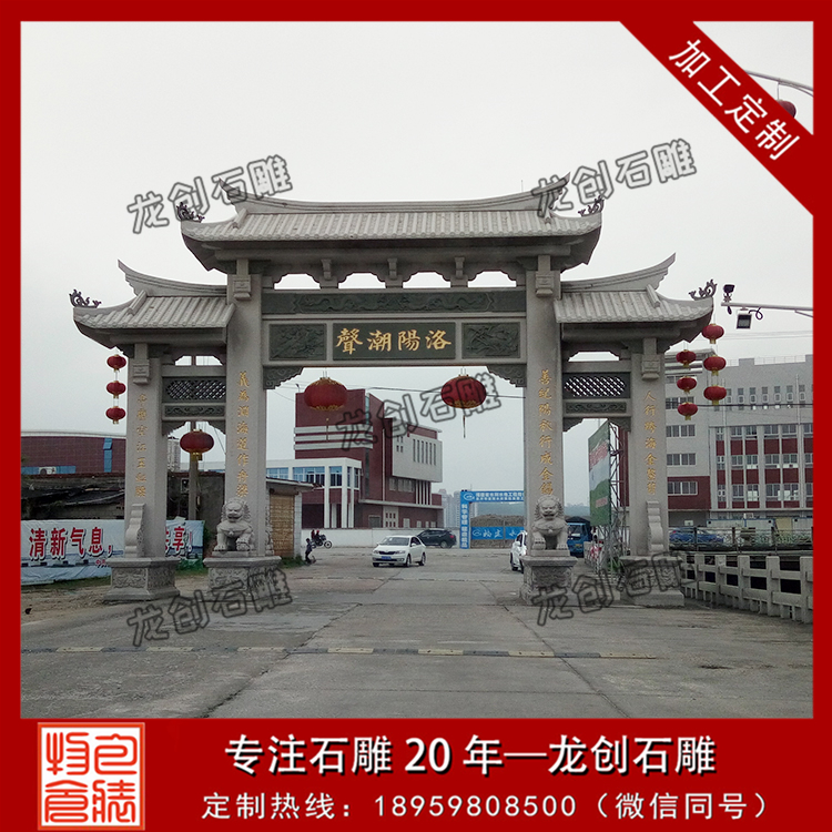 龍創(chuàng)石雕,專業(yè)的青石牌坊制作廠家,現(xiàn)有出售青石三門三樓、青石三門五樓、三門七樓等樣式的石牌坊,同是也承接來(lái)圖來(lái)樣定制,歡迎來(lái)電咨詢。