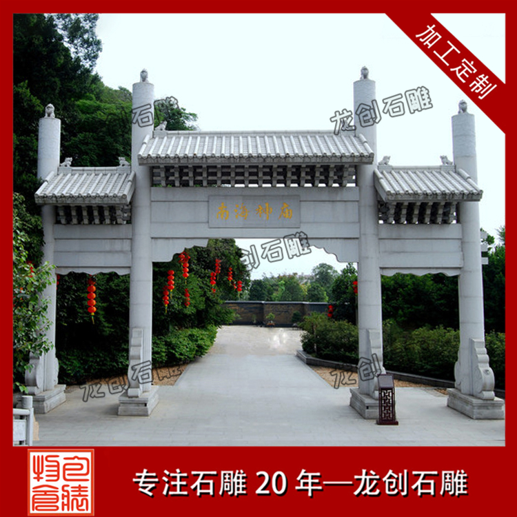 牌樓石雕制作加工相對于牌坊制作加工會更復雜一些,樣式也更豐富,今天我們來了解一下牌樓石雕制作加工的過程:
